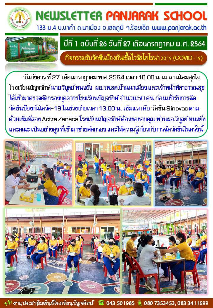 กิจกรรมคัดกรองบุคลากรโรงเรียนปัญจรักษ์ จากเจ้าหน้าที่สาธารณสุข ก่อนเข้าฉีดวัคซีน Sinovac เข็มที่ 1 ฉ.26