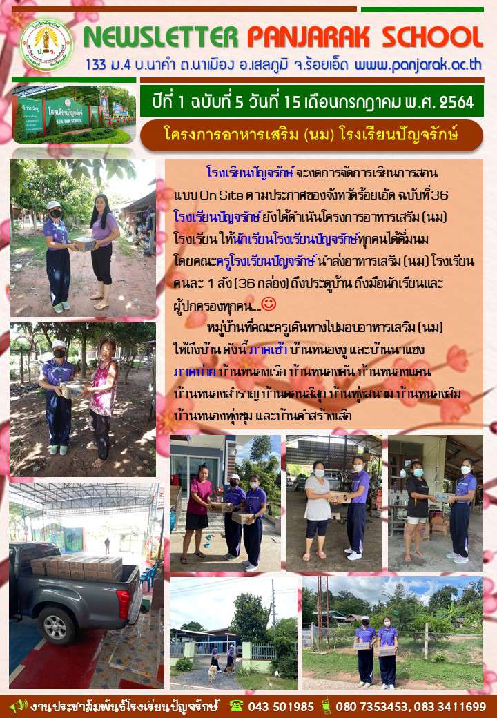 โครงการอาหารเสริม (นม) วันที่ 15 กรกฎาคม 2564