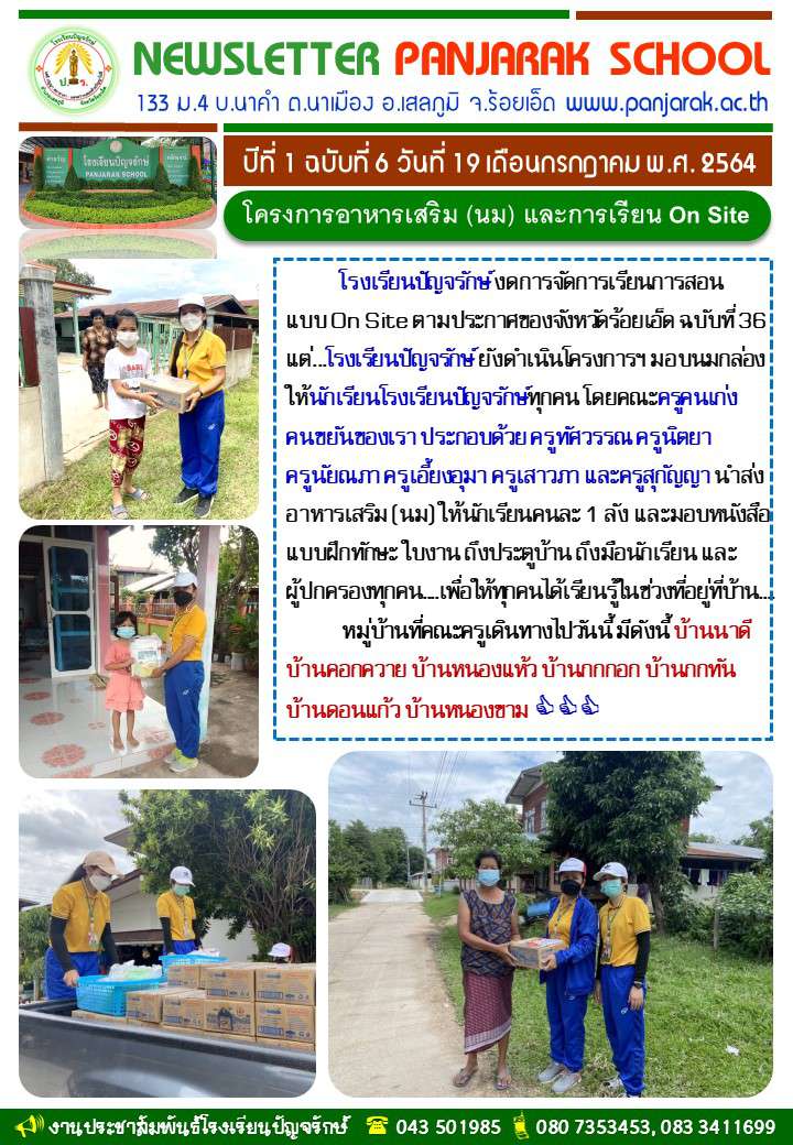 โครงการอาหารเสริม (นม) และงดการเรียน On Site ฉ.6